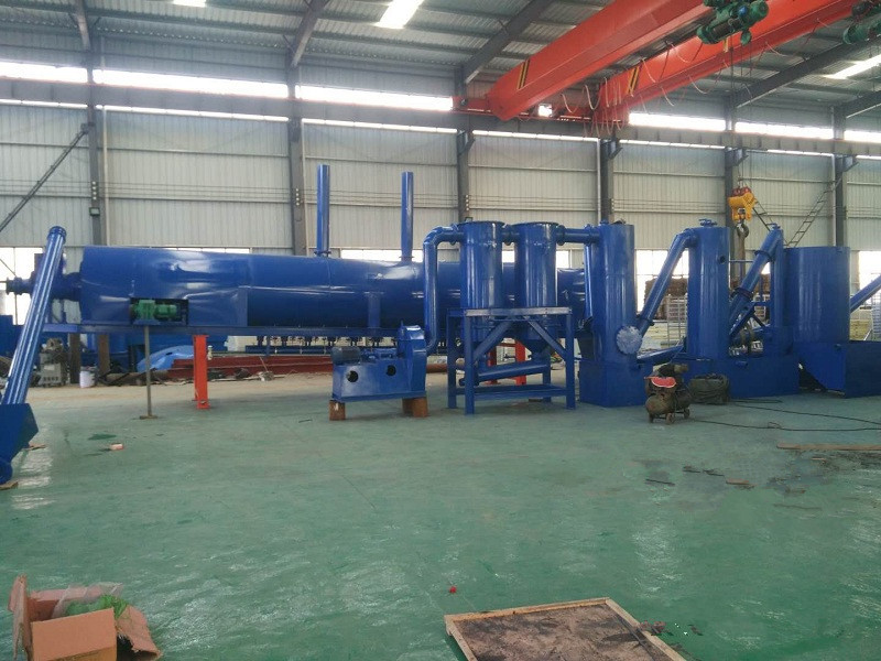 宇航機械生產的炭化機要把把含水量50%左右的原料經過滾筒烘干機干燥,之后通過節能環保型連續式炭化機,炭化成為合格的碳粉;首先把含水量50%左右的原料經皮帶輸送機進入烘干機,干燥后達到水分20%左右,烘干機熱源采用炭化機余熱干燥鋸末;