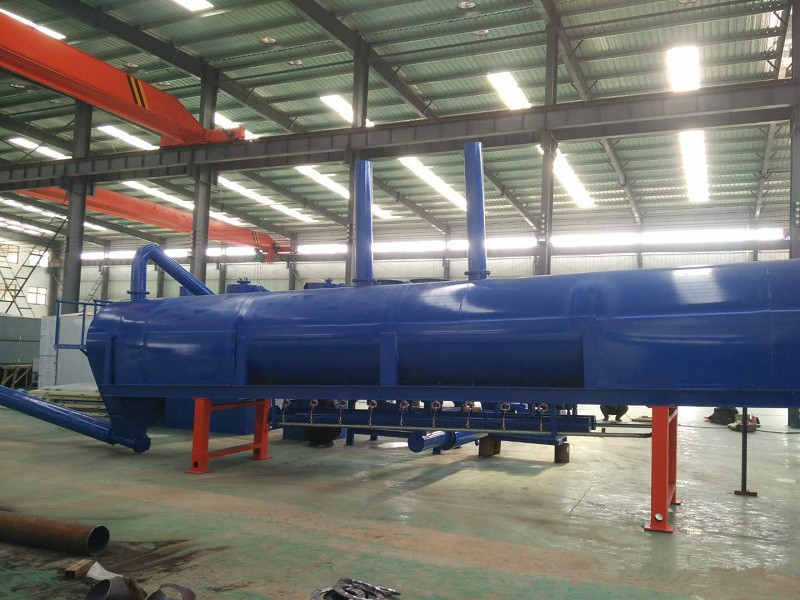 全自動木炭機設備生產線是由氣化爐,煙氣凈化系統(tǒng),炭化機,冷卻機四達設備構成,所有內部件采用特種耐高溫貴金屬鋼制成,堅固耐用,不變形,不氧化,保溫性能好,操作簡單,安全可靠。炭化機是將物料先經過氣化爐燃燒,產生煙氣,經過煙氣凈化系統(tǒng)過濾出木焦油等雜質后,將煙氣傳輸進炭化機進行燃燒,達到一定溫度時,炭化機添加需要炭化的物料,經過管道的傳輸,使物料在炭化機內燃燒,有機物燃燒需要三點,熱量,氧氣和有機物,因為炭化機內幾乎是密閉空間,滿足不了氧氣的需求,是物料在炭化機內部800度高溫下,經過對炭化機內部輸送裝置快慢的調整不會燃燒成灰,只會燃燒成炭。在炭化機內燃燒的物料所產生的煙氣經過煙氣凈化的處理后,重新回到炭化機內進行燃燒。使機器的熱能連續(xù)運轉。達到無煙,環(huán)保,連續(xù)的效果,最后炭經過冷卻機的輸送進行時炭出來時溫度只有50-80度。炭在出來后進行輸送的過程,因為炭充分接觸空氣,如果物料密度大,比較厚,雖然表面無明火,在物料內芯可能會有火星,也有可能自燃,需要加裝冷卻設備,對出來的炭進行二次降溫,達到完全杜絕火源。